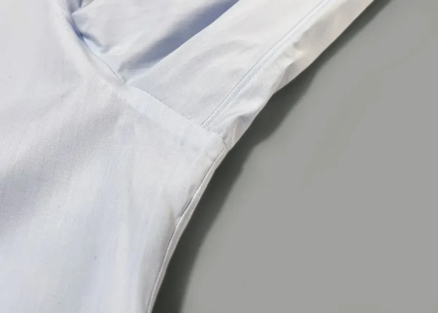 アームホール部分は身頃と袖の縫い合わせをミシンで行い、縫い代を手作業で優しく縫い付けています。