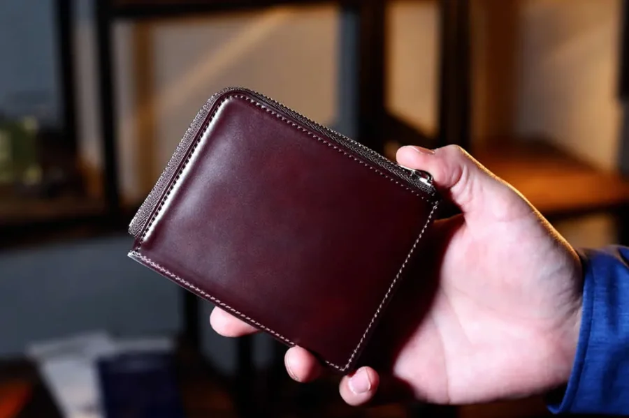 コードバンは水や過度の乾燥には気を付けたい素材ですが、財布やカードケースなら触るだけで基本的な水分や油分に困りづらい素材です。