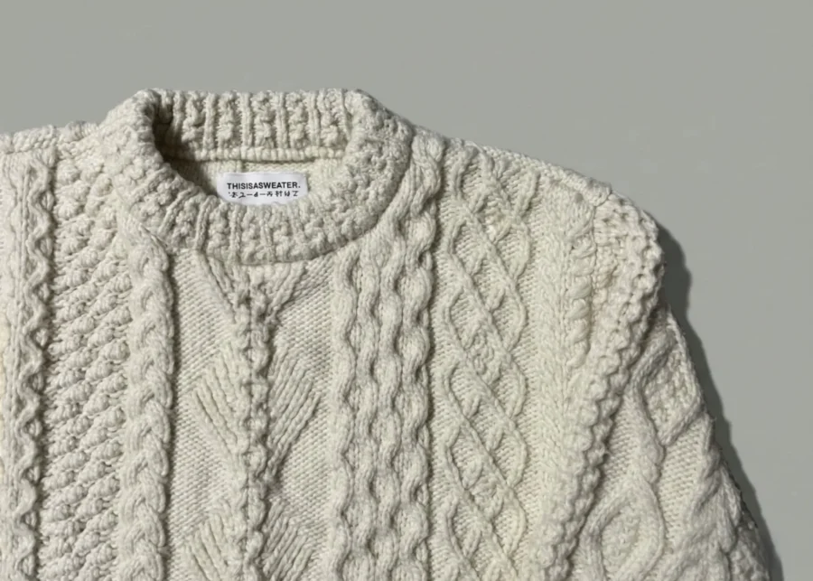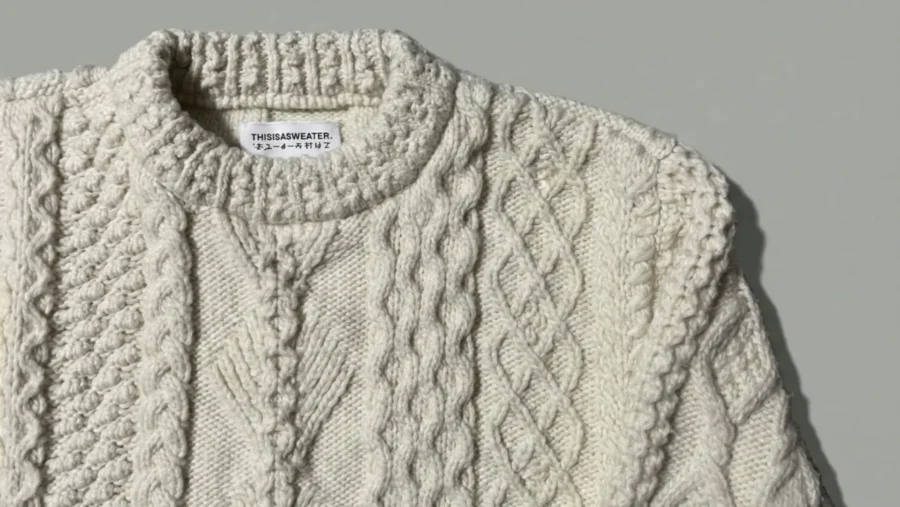 ここからは、山形の米富繊維(Yonetomi Seni)のブランド「THISISASWEATER.」の一商品であり、アランニットの究極系を目指した「A2:A SWEATER IS LOVE.」の私物を紹介します。