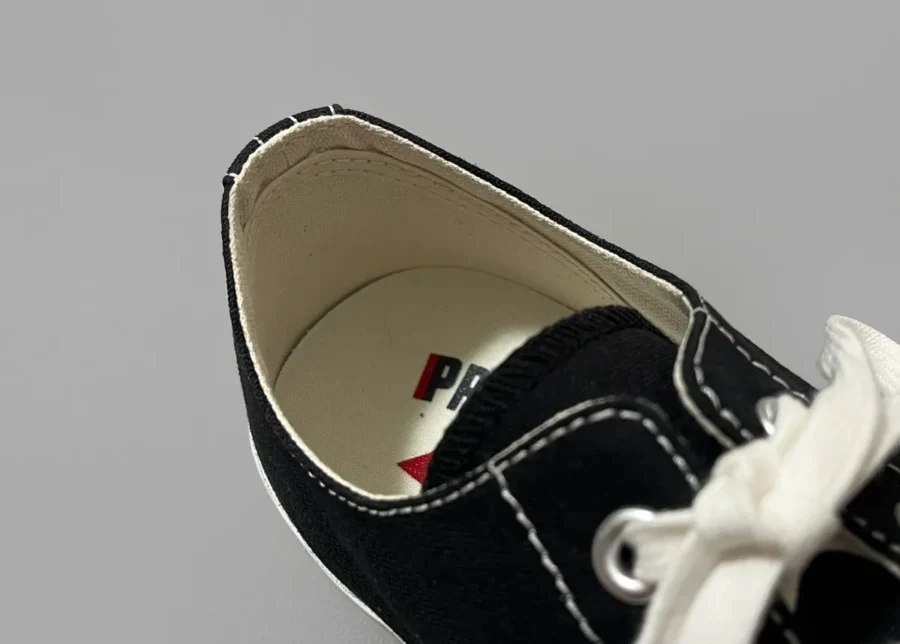元々は同じバスケットシューズゆえに、パッと見の様相はオールスターと近しいものがある一方、よく見ると細かな部分が高級感ある仕様になっています。