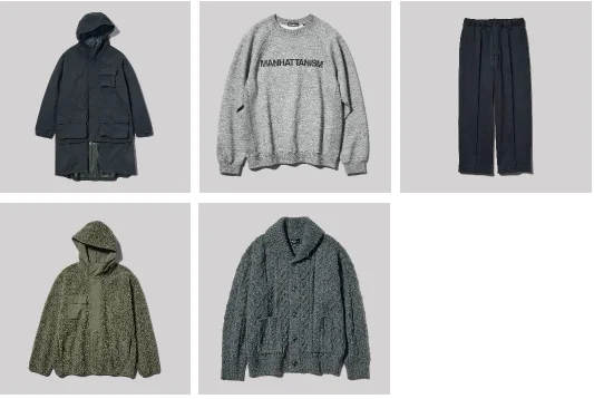 - 商品数:全5型(パデッドシェルパーカ/ボアフリーススナップパーカ/ケーブルショールカラーカーディガン/ヘビーウェイトスウェットプルオーバー/ヘビーウェイトスウェットパンツ)
